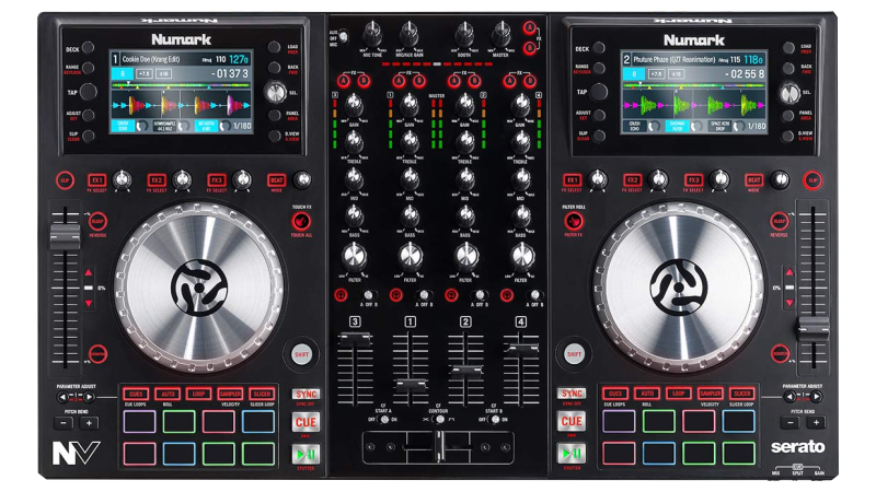 Full-integrated 4-deck controller including 30 touch-sensitive knobs and faders for intuitive control over software, 2 bright, full-color displays reveal pop-ups displays, views, and panels. Touch strip provides tactile control over track position, pitch bend and more Quickly access track BPM and Key as well as Effects and Sampler controls